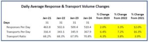 MedStar Response Transport Volume Table Small Through Jan 2024